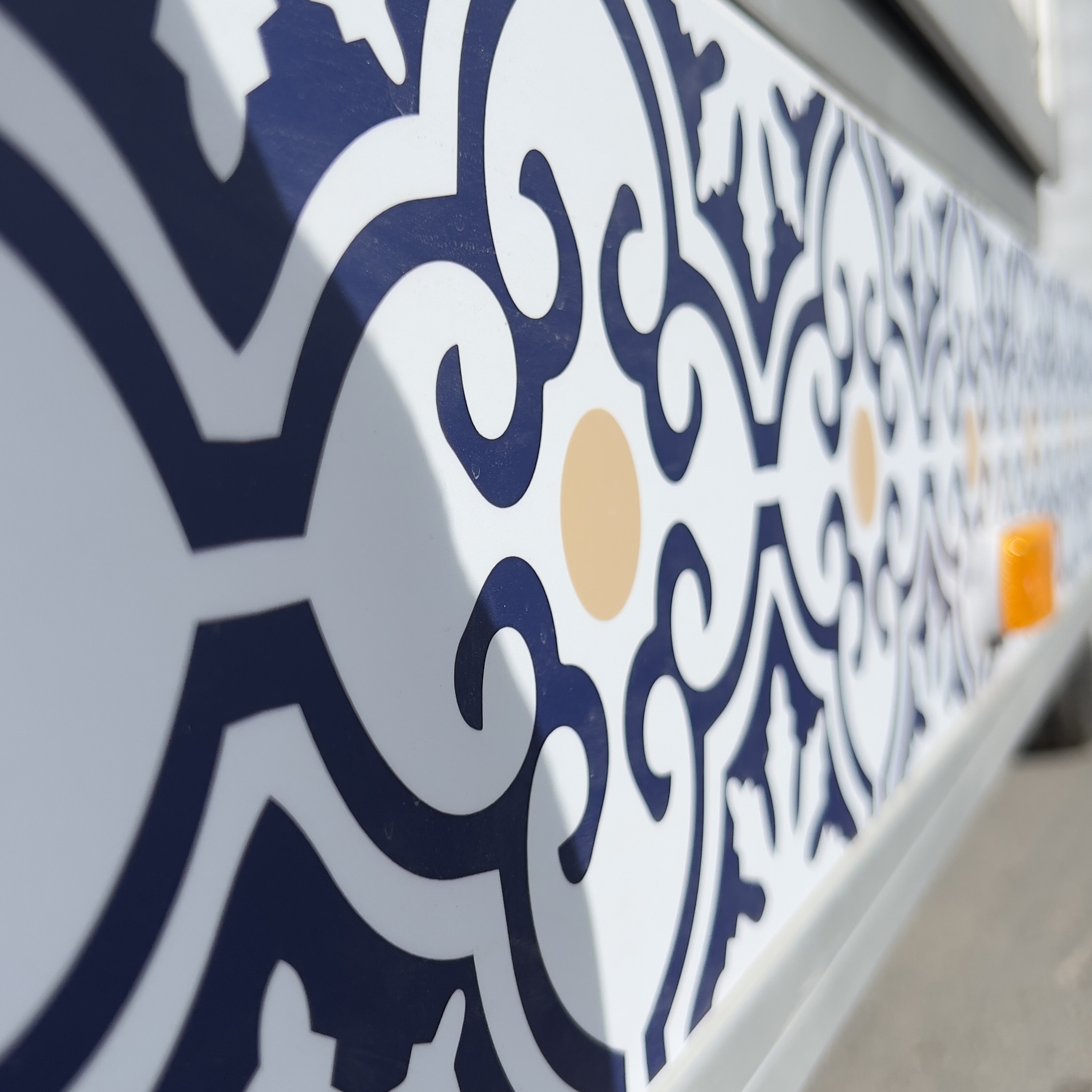 Le Bleu de Naples profond apporte authenticité et confiance, tandis que le Doré Grand-Ducal incarne la noblesse du service. Ce contraste assoit une marque qui s'impose par son élégance intemporelle.